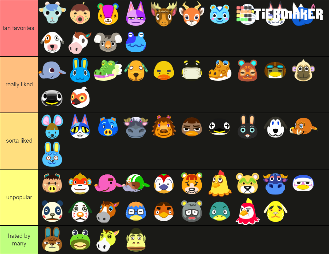 Share your Tier List. Recent Animal Crossing Tier Lists. Every Villager Ranked By Popularity R Animalcrossing How To Get A 3 Star Town Rating For K K Slider In Animal Crossing New Horizons Switch Polygon.